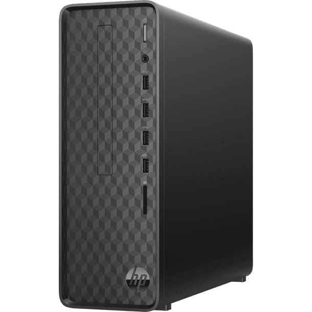De HP Slim S01-aF0932nd is uitgerust met een HDMI- en een VGA-poort, zodat je tot twee monitoren tegelijkertijd aansluit. Dankzij het compacte formaat van de computer heb je daar ook de ruimte voor, want dit systeem neemt met een breedte van maar 9,5 centimeter weinig ruimte in op je bureau.